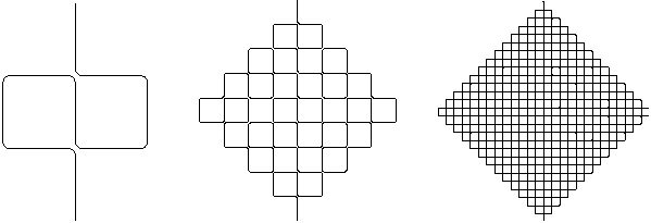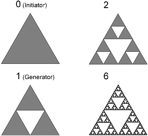 In der Chaostheorie gibt es noch viele interessante Beispiele für Fraktale, die bekanntesten davon sind wahrscheinlich diejenigen von Sierpinski und Cantor. Eine Besonderheit ist diesen allerdings noch gemeinsam: Im Gegensatz zu den vorher besprochenen wird hier von einem Iterationsschritt zum nächsten die Figur nicht "größer", sondern sie wird kleiner.